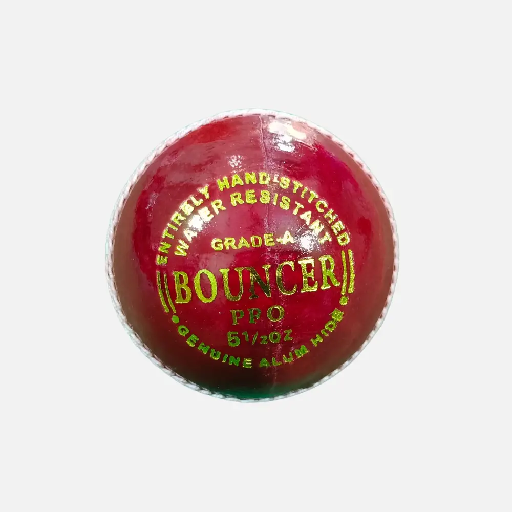 Its four-piece build and strong cork-and-rubber core give the Bouncer Pro excellent balance and shape retention, even after long innings on turf or mat pitches. The deep red finish is polished to deliver consistent swing through the air and a professional look on the field. Whether used for club tournaments, training sessions, or league matches, this ball provides the perfect combination of durability, feel, and match-level performance.
