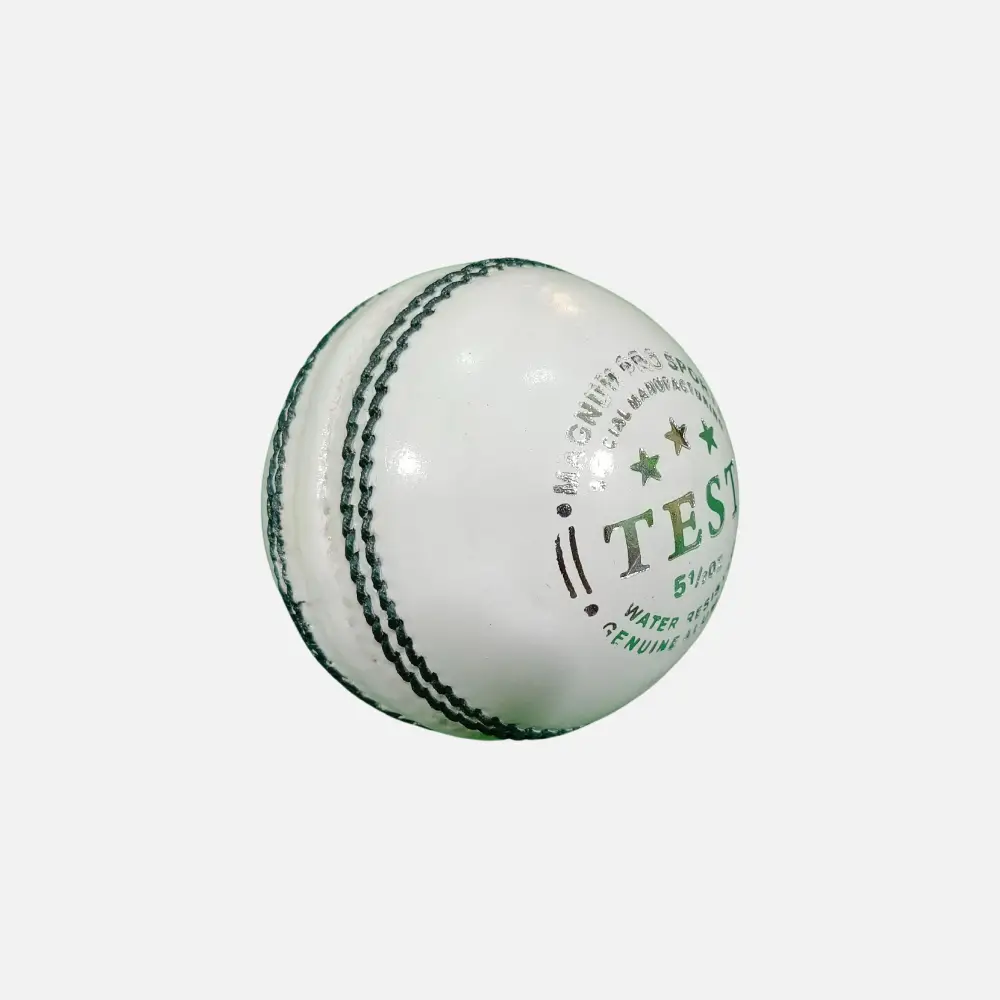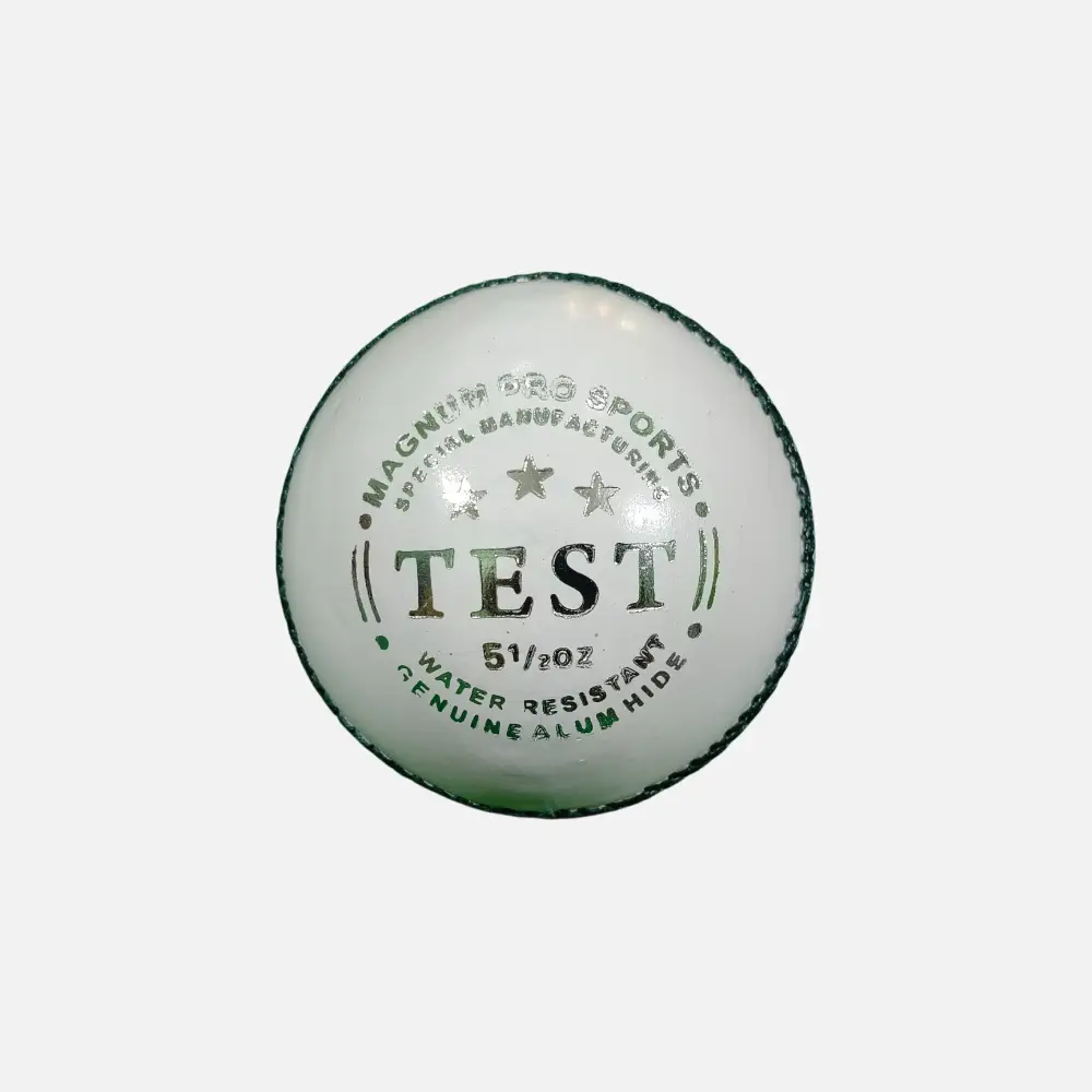 The Magnum Pro Sports Grade A Test Pro White Leather Ball delivers elite match performance for modern limited-overs and day-night cricket. It’s built with select white leather that offers exceptional visibility and strength, combined with tight hand-stitching that provides a sharp, durable seam for consistent control and movement.